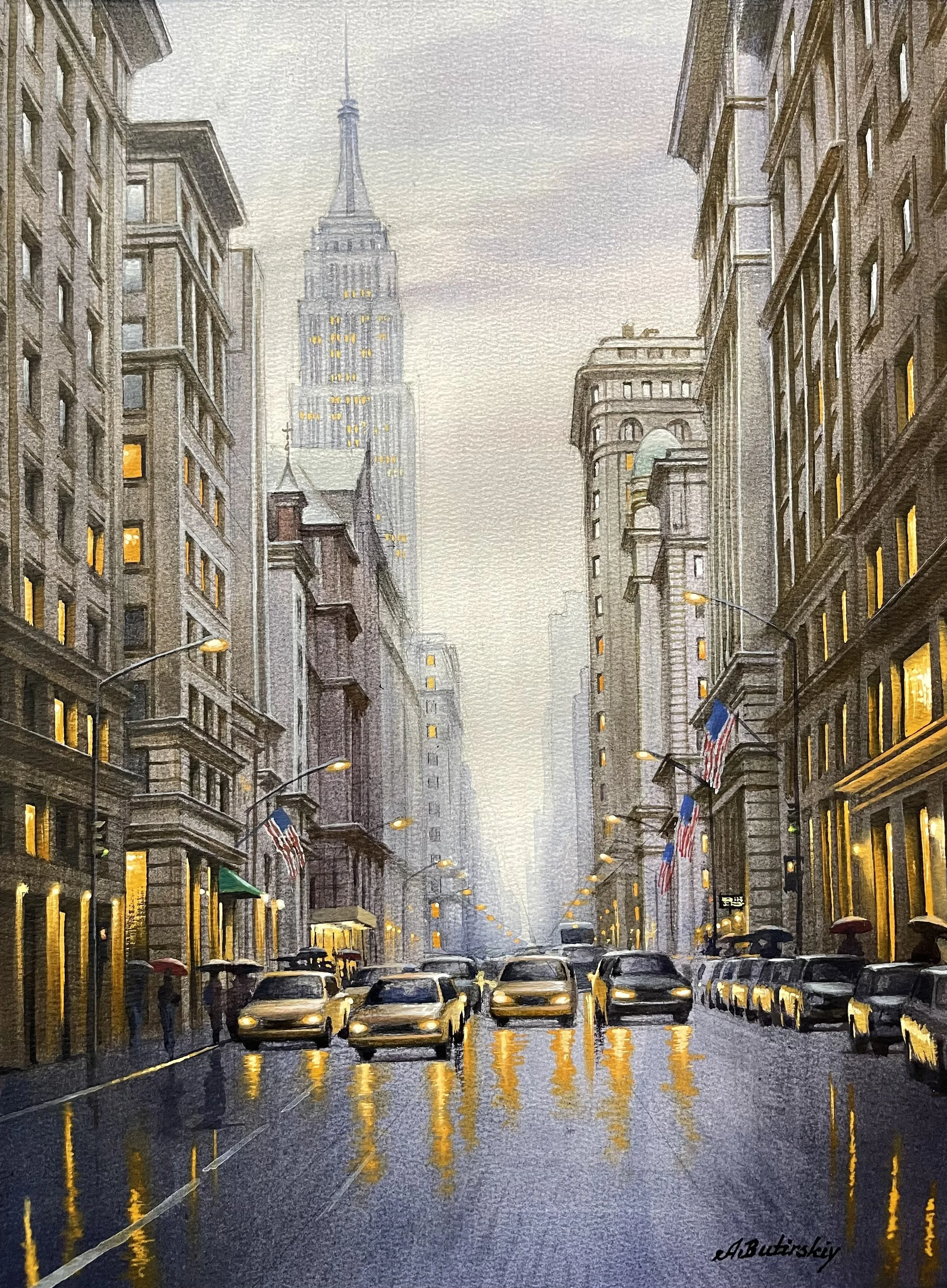 The power and intensity of the relationship between light and dark are the profound forces of his work. The sophisticated application of light effects with color reinforce the majesty of his compositions. Butirskiy’s paintings are reminiscent of the works of Claude de Lorraine and Caravaggio with their luminescent qualities and skillful variations of light and dark.