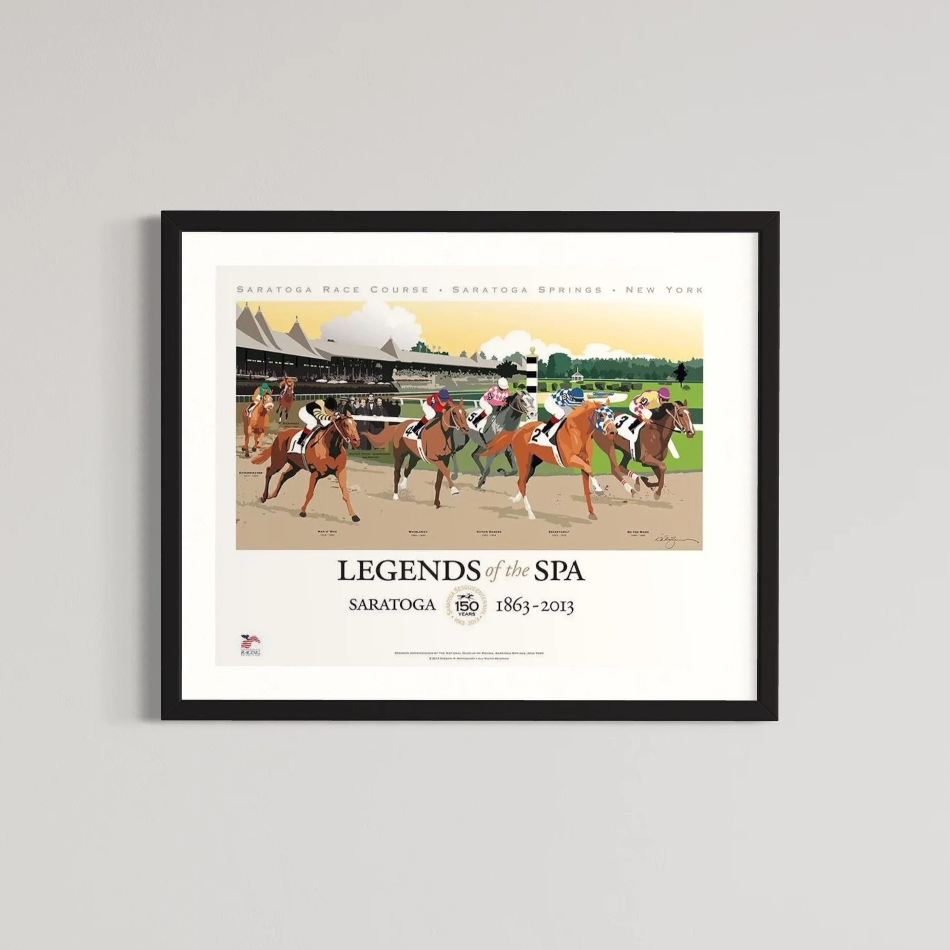 Greg collaborated with Vic Zast, writer for MSNBC, The Bloodhorse, and other thoroughbred publications, as the illustrator of “The History and Art of 25 Travers,” published in June 2008. In August 2008, Greg had a solo exhibition of his work at the Arts Center Gallery in Saratoga Springs, NY, the first time that all of his original silkscreens and giclées were shown. In 2015, the National Museum of Racing and Hall of Fame held a 30-year retrospective of the posters and additional racing art.