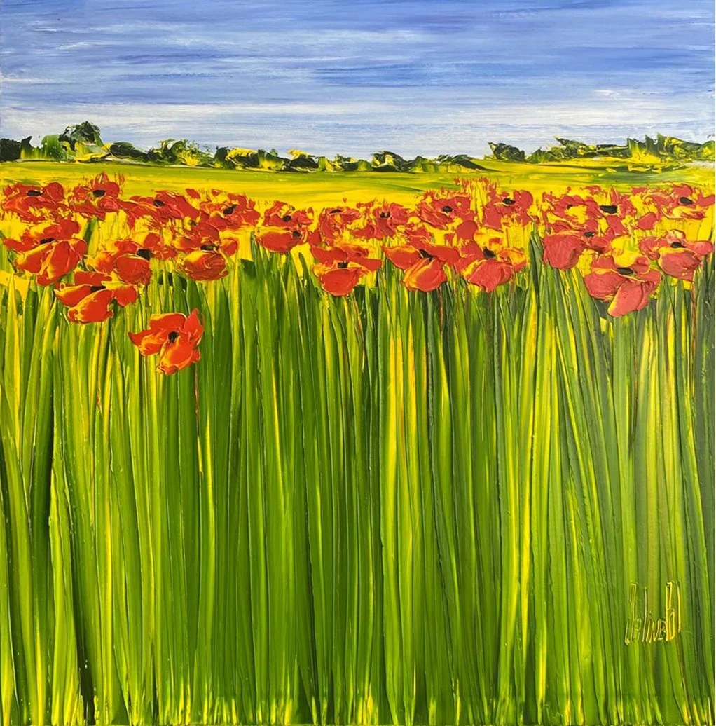Realism goes hand in hand with illusion and fleeting impressions. One could be walking through a field of poppies and yet it is almost as if you can see the wind. Her style is inspired by the great masters of the Impressionist movement, but has evolved and developed giving her works a unique, original feel and touch. Movement suffuses her works. They exude the dynamism of marching armies, rippling waters, swaying cornfields and dancing flowers.