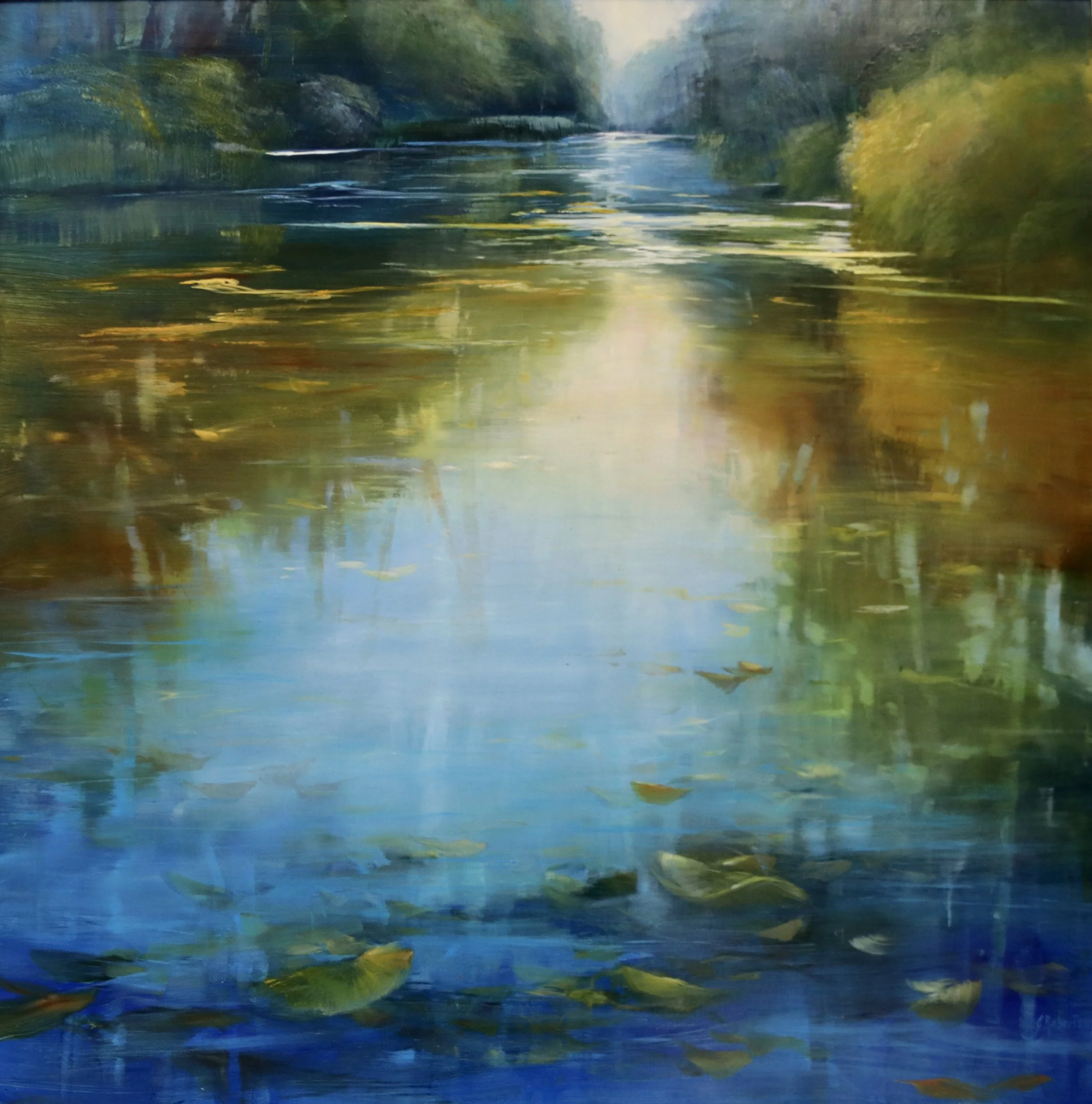 Living in Madison, Connecticut, Janine began her career as a muralist and trompe l’oeil painter doing significant commercial and residential installations throughout New England. Eventually, Janine changed her focus to landscape painting in oil as her work as a muralist became increasingly detailed. In this medium she discovered a more satisfying, intimate scale for her work. It was in her exploration of landscape painting where Janine discovered a love of aluminum and copper as a substrate. The ultra- smooth surface highlights brushstrokes and texture while adding an ethereal quality to her work. The depth and light of the reflective surface adds wonderful dimension to her paintings.