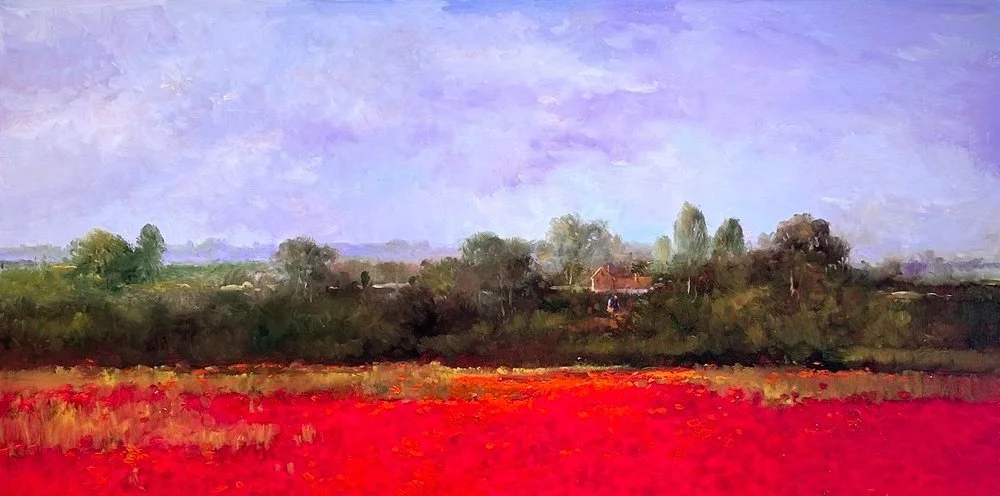 Monique Sakellarios has an extremely distinct style. Her use of lavish purples combined with warm earth tones merge to create beautiful, vast landscapes. Her well-defined technique was nurtured while she studied in Cairo, Egypt at the Leonardo Da Vinci School of Art as well as the American University in Cairo.